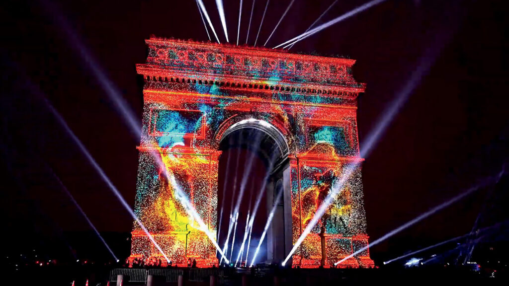 Le spectacle Evolv a illuminé l’Arc de Triomphe pendant deux heures, lors du réveillon du Nouvel An 2025. © Kazmankante - Electron Libre
