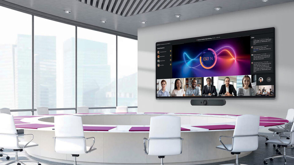 Avocor est l’un des instigateurs de l’écran 21/9e pour salle de réunion. En 105” de diagonale, il optimise l’affichage des informations dans le cadre de la visioconférence par exemple. © Avocor
