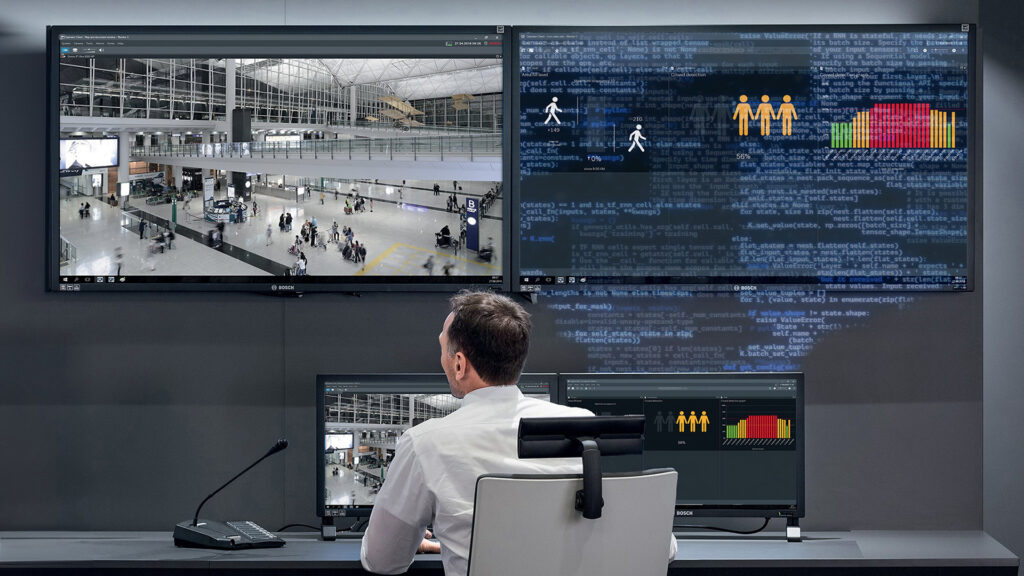 Bosch fait la promotion du modèle du jumeau numérique : une image du bâtiment connecté permet de générer un fonctionnement type en liaison avec le bâtiment réel afin d’effectuer une supervision globale à l’aide de l’IA. © Bosch