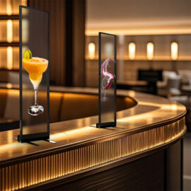 Avec une transparence supérieure à 80 %, ce système LED permet de diffuser des contenus dynamiques et immersifs tout en préservant la luminosité naturelle des lieux et la visibilité vers l’intérieur. Son design ultrafin (1,8 mm d’épaisseur), sa structure légère et sa capacité à s’intégrer sans support visible en font un choix idéal pour les environnements exigeant discrétion et esthétique : retail, musées, galeries, aéroports, halls d’accueil ou encore plateaux TV.