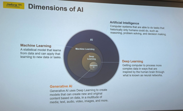 « La plupart de nos solutions utilisent l’IA générative et ses technologies adjacentes. En tant qu’entreprise qui fabrique des objets permettant de voir à travers des caméras ou d’entendre avec des haut-parleurs et des oreillettes, l’IA générative est une technologie extrêmement intéressante. L’arrivée de Chat GPT fin 2022 a ouvert la voie d’une interaction plus humaine entre l’homme et la machine, et sa valeur ajoutée est certaine pour nos produits », explique Thomas Senger, responsable de l’IA et de l’incubation numérique pour Jabra. Il compte bien continuer à perfectionner l’offre Jabra en termes de commandes biométriques, de transcription automatique, de chapitrage, de temps de parole, d’annulation du bruit…