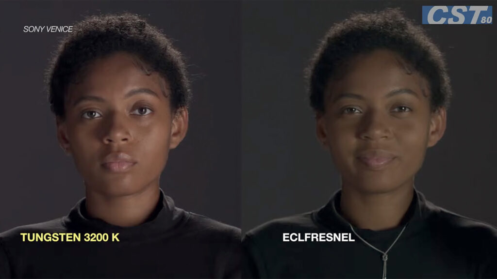 Comparatif de l’éclairage Tungstène avec un éclairage Led sur un visage. © CST